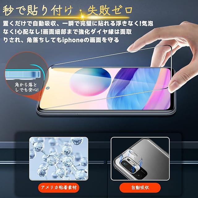 【専用設計·簡単に貼り付け】xiaomi Redmi Note 10T / Note 10 JE 専用液晶画面保護ガラスフィルム。本商品は日本素材のAGC 旭硝子 素材を採用して作られております。フィルムのシリコン自己吸着層により、スチールフィルムを携帯電話に合わせて軽く置くだけで、気泡が入らないように簡単に取り付けられます。(重点説明:フロントカメラのカメラ穴についてですが、ほこり・異物などの堆積を防止するため、ガラスフィルムにカメラ穴を開けていません。Seninhiのガラスフィルム 、通過率は99.9%なので、フロントカメラの正常使用に全く影響が出ません。)*モデルによってサイズが異なりますので、モデルを確認してご購入ください。