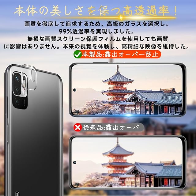 【超高透過率】新しいアップグレードした光学プロジェクション技術を使って、 液晶画面 保護ガラス フィルム を改良した後、約99.9%の高い光線透過率に達し、より高い光透過率と超クリアな視覚体験を実現します。液晶画面の本来の美しさを損なわないません。高精細度でいつでも写真やビデオを楽しむことができます。【パッケージ内容】 1×精緻な梱包箱 2×強化ガラス保護フィルム 2xレンズ保護フィルム 1×取扱説明書