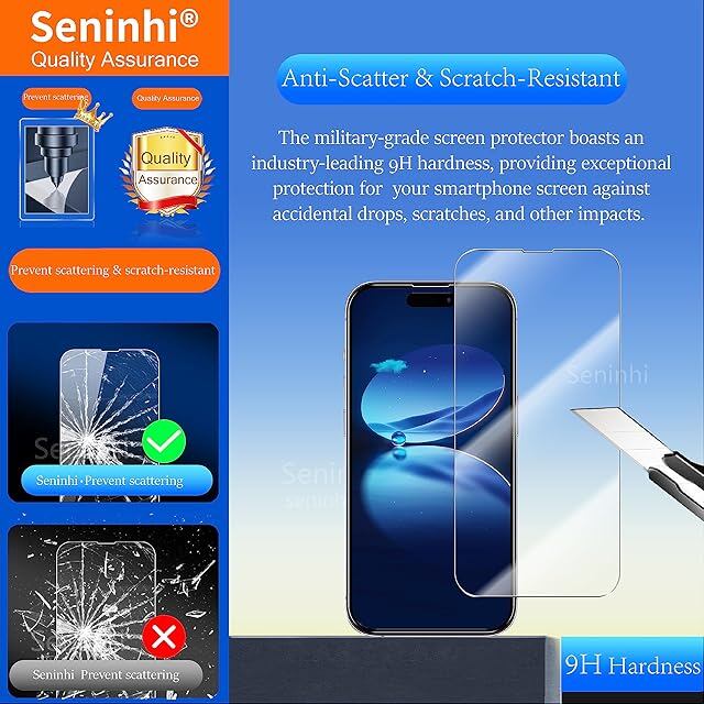 商品名:seninhi [3+3パック] iPhone 14 Pro Max用 スクリーンプロテクター 3パック + カメラレンズプロテクター 3パック 強化ガラススクリーンプロテクター [取り付け簡単フレーム付き] [硬度9H] [傷防止] [気泡なし] - クリア