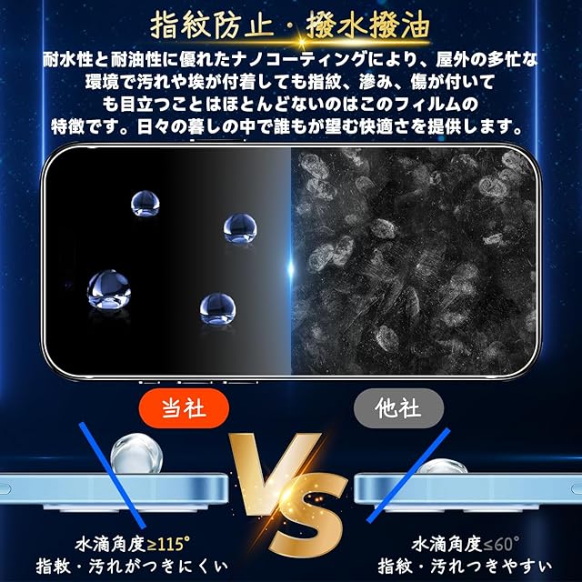 【汚れ防止&指紋防止 / 防水 / 耐油性】保護フィルム は、石材ナノコーティング層の最新の指紋防止技術を使用していますので、通常フィルム のようなラフなタッチは一切ありません。画面がさらさらで指紋が付きにくい、高感度で快適な操作を実現、汗防止、スムーズにゲームプレイ体験、長時間の楽しみなどの利点もあります。*万が一付着した指紋、水滴、汗、化粧品などは簡単に拭き取れます。市場に出回っている99%の携帯電話ケースと互換します;強化ガラスのサイズは携帯ケースを取り付けるためのスペースをよいし、両側が浮き上がらないようにします。何百もの携帯電話ケースがテストした後、適応率は 99% と高くなり、フィルム対応できる携帯ケースの心配がありません。