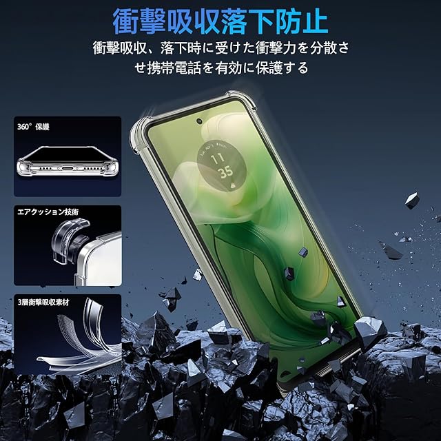 <b>【対応機種】</b>Moto G24<br> 専用の最新の進化透明携帯電話ケースです。携帯電話本来の美しさと高級感を再現します。<br>TPU素材なので、伸縮性があり、取り付けと取り外しやすくて、落下や衝撃が分散して吸収できます。<br> <b>【人気の理由】</b><br>弊店は最もよいサービスを経営理念とし、すべてのお客様にご満足いただける商品、及びサービスの提供を目指しております。<br> <b>【超耐衝撃耐性・キズ防止・指紋防止】</b><br>表面に耐油コーティングで設計しており、つや消し、滑り止め効果、指紋防止、油汚れ防止、汗止め、高い感度タッチ、さわやかなタッチなどの特徴を備えております。<br> <b>【ケースの外し方】</b><br>設計上、なるべく装着しやすく、落としても外れないようにしていますが、下記の方法で簡単にケースを取り外すことができます。<br>ケースの下部を握って、もう片方の手の親指の腹でケースの右上(カメラに近い)の角をめくるように力を入れて押し下げます。<br> 同じ方法でケースの反対側の角も押し下げます。<br>そして、ケースを固定したまま、カメラ部分を軽く押せば、ケースを取り外せます。<br> <b>【完璧なデザイン・レンズとLCDの保護】</b><br>SGSが認定した最高級TPU素材を採用して作られており、伸縮性があり、着脱しやすくて、落下などの衝撃を分散、吸収する効果があります。前と後ろのカメラ部分のエッジが液晶画面とカメラレンズを保護します。<br> <b>【優れた放熱性・ワイヤレス充電対応】</b><br>放熱性が高い設計なので、効果的に放熱し、バッテリーにとても優しいです。<br>本製品はガラスフィルムに邪魔しなく、顔認証等にも影響を与えなく、携帯電話の様々な機能を上手に便利にお使いいただけます。<br> <b>【高い透明性と抜群なフィット感】</b><br>超精密な光透過分子を備えて、後ろの光透過率は 99% に達します。<br>環境に優しく、無毒無臭の高品質素材を採用して酸化防止加工しており、長年に使用しても黄色くなりません。<br>厳選したポリカーボネート素材は、本来の美しさや高級感に影響しなく、通常のスマートフォンよりも上品に見えます。<br><b>【取り外し方】</b><br>下側にあるイヤホン側の角から両手の親指で押すと、簡単に外れます。ご使用の際に、元のケースを剥がしてから取り付けてください。<br><b>【アフターサービス】</b><br>私たちは100%のお客様が満足できることを目指しております。万一、中に故障や不良な場合があれば、ご遠慮なく、「アカウントサービス」>「注文履歴」>「販売:xiaoluoluo」>「質問する」。私たちはお早めに対応いたします。お客様が満足できるまでアフターサービスを提供します。<br> <b>【30日以内理由問わず返品 / 交換】</b><br> 購入日から1 ヶ月以内、万が一何か不具合がありましたら、弊社までご連絡ください。<br>お客様からのお問い合わせ内容に応じて無料交換、又は返金対応させていただきます。<br> <b>【12ヶ月の品質】</b><br> 商品到着日から13ヶ月内、商品何か不具合がありましたら、【出品者に連絡】をクリックして弊社までご連絡ください。<br>お客様からのお問い合わせ内容に応じて代替品交換・返金可能です, お客様にご満足頂けるよう精一杯頑張ります。 ご安心して購入ください。<br>