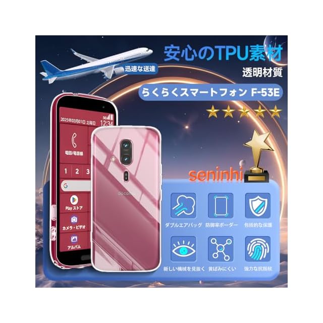 商品名:対応 らくらくスマートフォン F-53E ケース らくらくスマートフォン F-53E クリア ケース あんしんファミリースマホ カバー TPU 保護ケース カバー背面 シェル クバー ソフト 透明シェル ンプロテクター