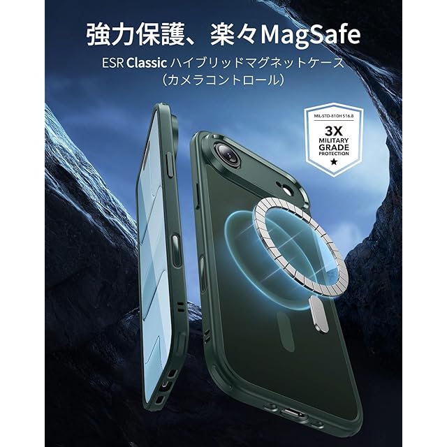 商品名:【3倍米軍MIL規格・MagSafe対応】ESR iPhone Air ケース 極薄 ワイヤレス充電 ストラップホール付き エアガードコーナー 25W高速充電 Qi2.2対応 4H傷に強い背面 傷防止 滑り止め 指紋防止 耐衝撃 耐黄変 マグネットスマホケース iphone airケース カメラコントロールPhoneair 用 Classicシリーズ フロストグリーン