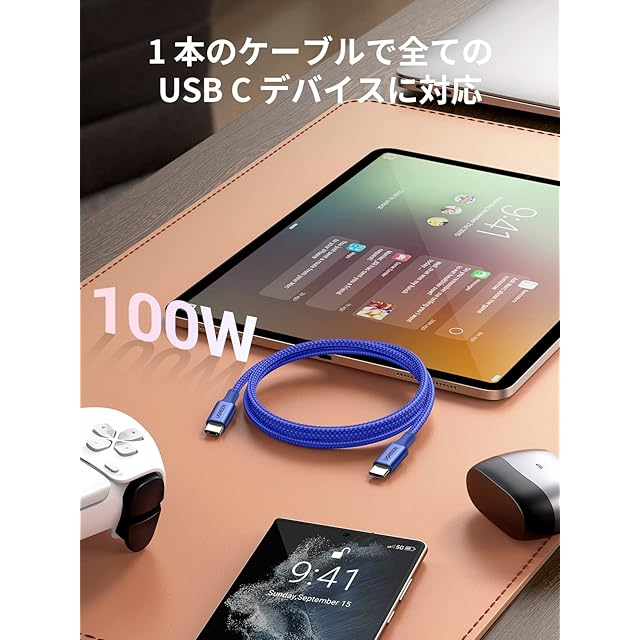 商品名:UGREEN USB Type CケーブルPD対応100W/5A 超急速充電USB C to USB C 断線防止 iphone17/16/15シリーズ、MacBook Pro、Matebook、iPad、Xperia、Galaxy等Type-c機種対応(1m, 青い)