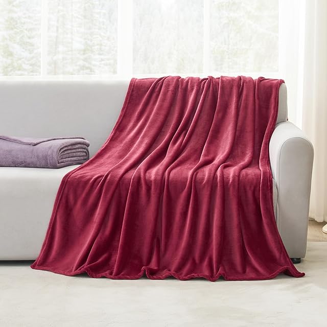 Hansleep 毛布 もうふ ひざ掛け 冬用 ひざかけ 膝掛け ブランケット 通気 ハーフケット マイクロファイバー 柔らかく肌触り 暖かい フランネル 洗える 静電防止 四季適用 (70x100,バーガンディ)