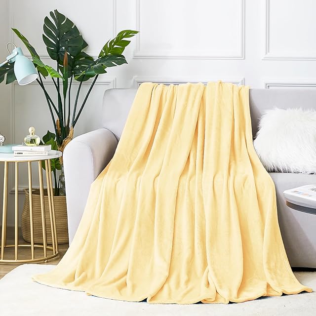 Hansleep 毛布 もうふ ダブル 冬用 黄色 ブランケット 大きめ 大判 冷房対策 マイクロファイバー 柔らかく 肌触り フランネル 洗える 軽量 静電防止 四季適用 (180x200,イェロー)