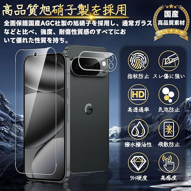 商品名:対応 Google Pixel 10 Pro XL ガラスフィルム Google Pixel10 Pro XL ガイド枠付き 指紋防止 【2* フ ィルム + 2* 大きい レンズ保護フィルム+ 1*ガイド枠付き+ 1*クリーニングツール】国産旭硝子材質 薄型 強化ガラス ピクセル 10 ProXL 保護 高光沢 液晶 ケース 9H硬度 厚さ0.26mm超薄型 高透過率 気泡なし SENXLL-Pixel10 Pro XLG05D