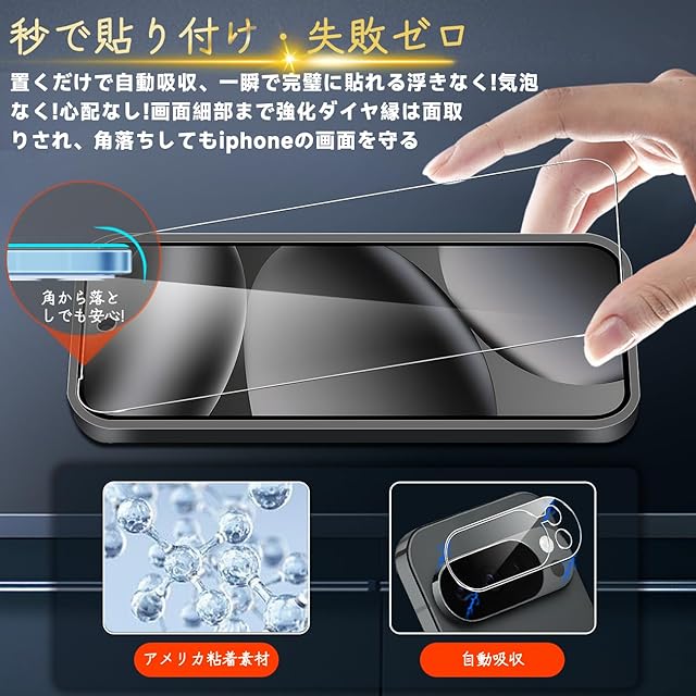 【汚れ防止&指紋防止 / 防水 / 耐油性】保護フィルム は、石材ナノコーティング層の最新の指紋防止技術を使用していますので、通常フィルム のようなラフなタッチは一切ありません。画面がさらさらで指紋が付きにくい、高感度で快適な操作を実現、汗防止、スムーズにゲームプレイ体験、長時間の楽しみなどの利点もあります。*万が一付着した指紋、水滴、汗、化粧品などは簡単に拭き取れます。市場に出回っている99%の携帯電話ケースと互換します;強化ガラスのサイズは携帯ケースを取り付けるためのスペースをよいし、両側が浮き上がらないようにします。何百もの携帯電話ケースがテストした後、適応率は 99% と高くなり、フィルム対応できる携帯ケースの心配がありません。