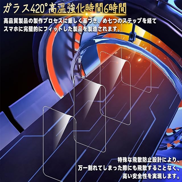 【高品質の材料の9H硬度】とレンズ保護フィルムはすべて旭硝子で作られており、スマホ保護フィルムの中で最高レベルの9H硬度に達しています、4.5時間以上の高温焼入れ処理を行い、スクリーンプロテクターの圧強度は 125mpa に達し、通常 ガラス の 5 倍になりました。しかもスクリーンプロテクターは衝撃を抑えるシリコンコーティングを内蔵しており、万が一ガラスが割れても、ガラスの破片が飛散しません。ハードコーティング技術は、衝撃を最小限に抑えて画面の破損を抑え、すり傷防止や指紋防止もしっかりとスクリーンを保護します。*大切な携帯電話の液晶画面を保護し、衝撃や表面のキズを防止します。