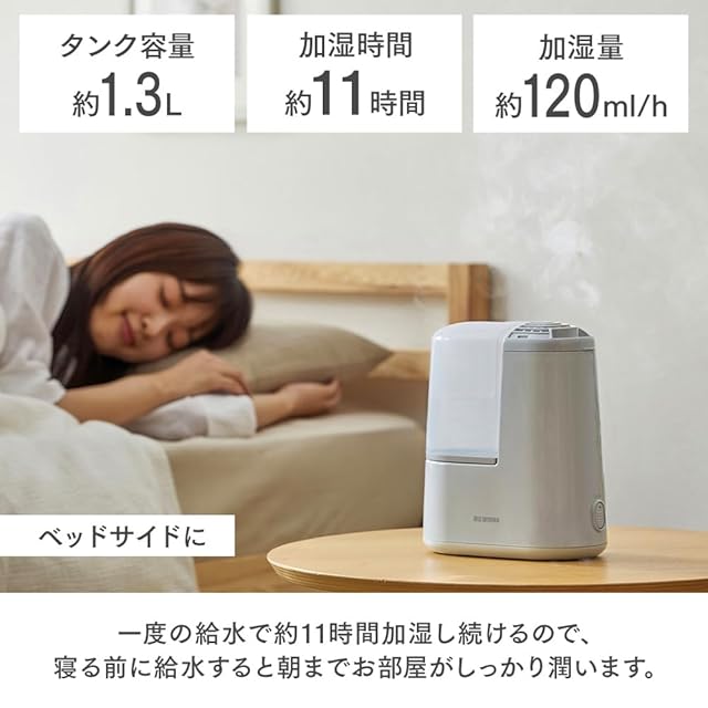 アイリスオーヤマ(IRIS OHYAMA) 加湿器 スチーム式(加熱式) 加湿量 120ml タンク容量 1.3L ~3畳 11時間連続加湿 アロマ対応 小型 卓上 デスク用 AHM-H12B-C アイボリー