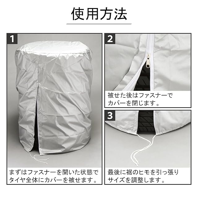 【簡単装着】脱着しやすいサイドファスナー付き&裾ひも付きなのでサイズ調整も可能です。(ご使用方法は画像の3枚目でご確認ください)