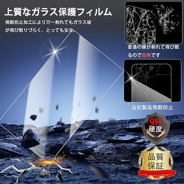 【耐久性 安全性】: 強化ガラス 耐衝撃、スクラッチ防止。飛散防止加工、激しい衝撃を受けてもガラスフィルムは貼り付けのままでございます。飛散傷害に安心してください。耐衝撃, 傷に強い素材採用、衝撃からきちんと守ります。