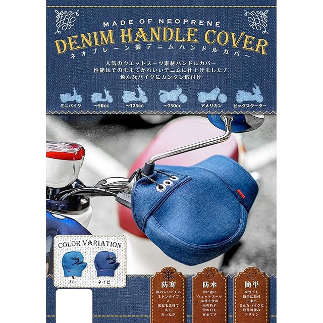 INFIMO ( 大阪繊維資材 ) デニムタイプ ネオプレーン バイク用ハンドルカバー 防水・防寒仕様 ネイビー DHC-04