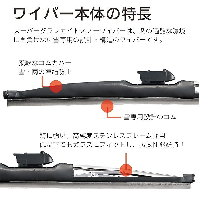 スーパーグラファイトコーティングゴムを採用した雪専用ワイパー(長さ:190~700mm)
