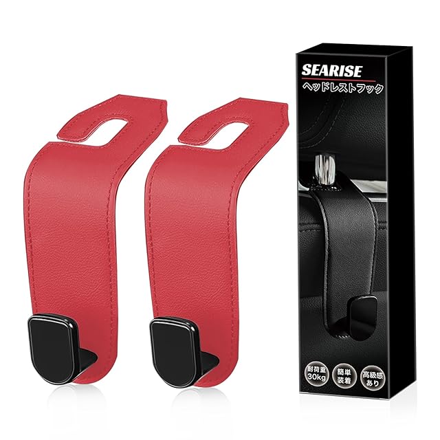 ヘッドレストフック 車 フック 荷物かけ 2個 荷掛けフック カー用品 便利グッズ (レッド)