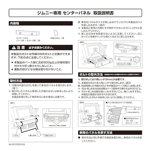 【内容物】・ベース部 / M8ボルト2個・付属品:パネル(内張り)はがし