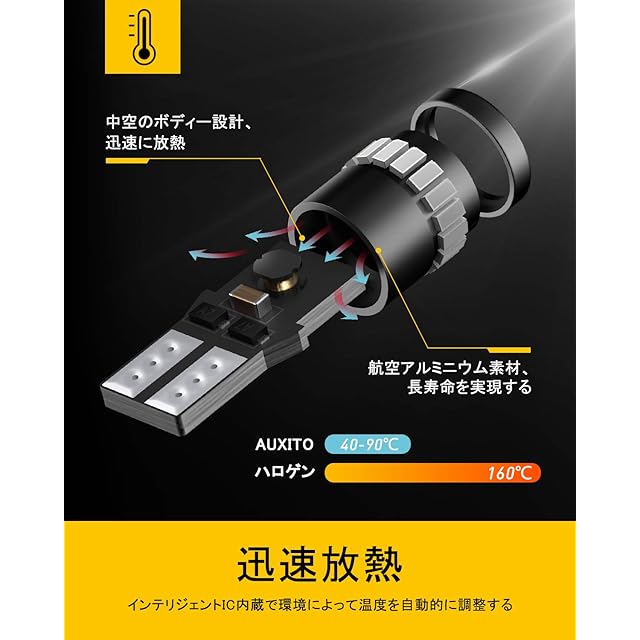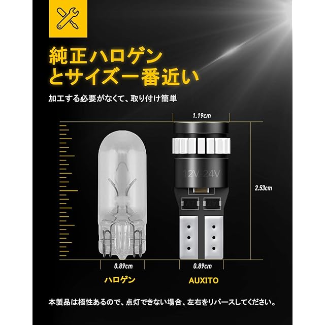 【多用バルブ&取付簡単】自動車適用。純正球(T10)とほぼ同じサイズなので、ルームランプ / ナンバー灯 / カーテシ / ポジション / ライセンスランプ /トランク灯 / クリアランス / ウエッジ電球などの交換ができ。スコダとVWのポジションとナンバー灯はキャンセラーできません。(他のドイツ系車はキャンセラーできないこともあります。