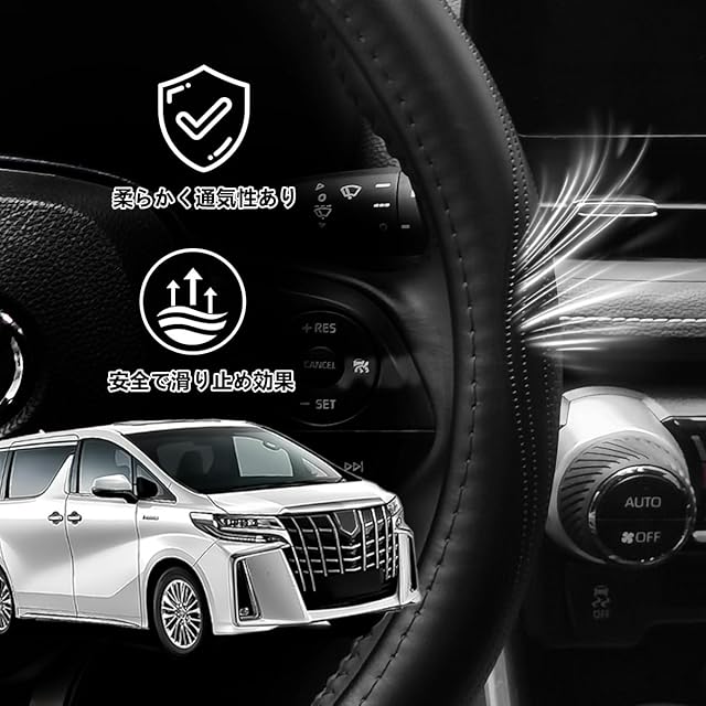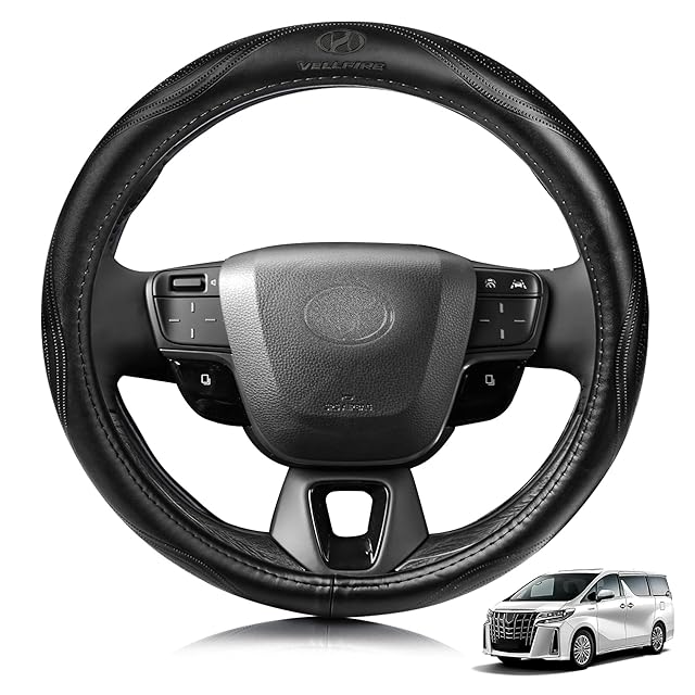 商品名:ElitingCar トヨタ に適用 ヴェルファイア Vellfire 20系 30系 40系 対応 ハンドルカバー 高級本革 ステアリングカバー おしゃれなデザイン 透湿性あり 耐摩耗性 防水仕様 汚れ防止 滑り止め 通気性優れ3Dグリップ 専車ロゴ オールシーズン対応 耐老化性強化 簡単取付 内装パーツ 車パーツ ドレスアップ 円形 ブラック 1pcs(37.5 センチメートル)