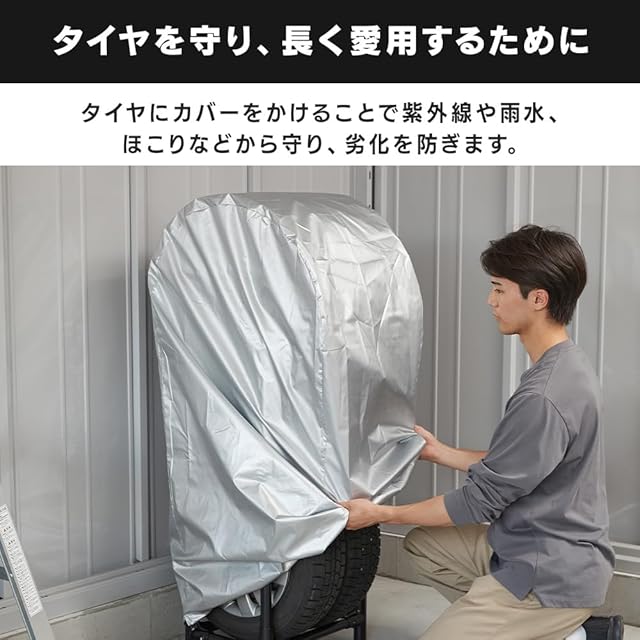 【雨やホコリからタイヤを守る】厚手タイプ×耐候剤入りで紫外線に強い。(※完全防水ではありませんので、直接雨の当たるところに放置しないでください。)