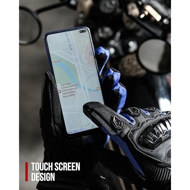 IRON JIA'S バイクグローブ 冬 防寒 オートバイ手袋 冬用 スマホ対応 防水 防風 保護手袋 裏起毛 滑り止め ブルー M