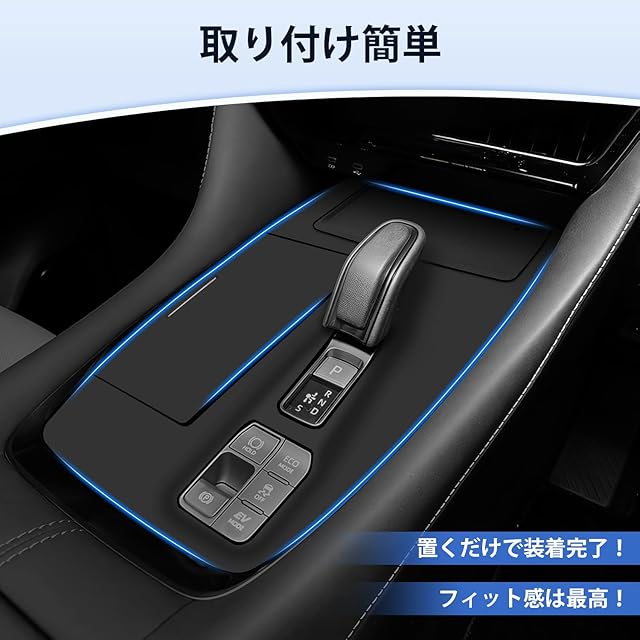 5.【取付もお手入れも簡単】:既存のシフトパネルに置くだけでお手軽に装着し、脱着も簡単です。また、水洗い可能ですので、お手入れも楽々になります。【取り付け説明】取り付けの前に、シフトパネルと製品の裏面をきれいに拭き取り、ホコリや汚れを取り除いてください。なお、取り付け後も2週間に一度程度、同様に軽く拭き取っていただくことで、ホコリなどの堆積を防ぐことができますので、定期的なお手入れをお願いいたします。
