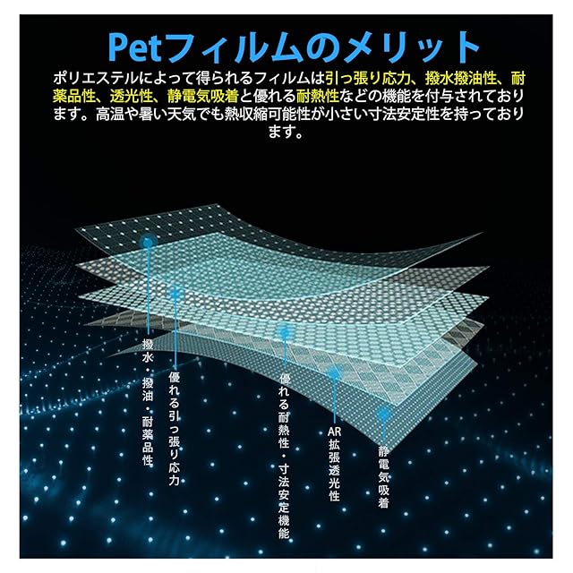 <b>幣品はruiya製、車用カスタムのカーナビ液晶保護PET製フィルムでございます。ご購入前、必ず車種をご確認ください。</b><br><br><b>適合車種:</b><br><br>新型 ダイハツ ムーヴ キャンバス LA850/860S型(2022.7~現行)9インチメーカーオプション専用<br><br><b>抗ウイルスHydro AG+技術新開発:</b><br> 銀系抗菌剤を特殊な超親水バインダーの中に分散することで、塗布膜表面だけでなく、膜中からも銀イオンが供給されます。これにより塗布膜表面の銀イオン濃度を高いレベルに維持でき、高い除菌性能を長期間持続できます。 バクテリア、ウイルスの成長を抑制し、黴菌の97.99%を殺すことがでくます。大人と子供達の健康を守って、頻繁に手でカーナビを触っても効果的に黴菌の危害を免れる!<br><br><b>HDクリア:</b><br> ruiyaの保護フィルムは、AR拡張現実技術を使って、他社のフィルムより更にクリアで99%透光性を持って、カーナビの画面を完璧に映す<br><br><b>キズ防止・汚れ防止:</b><br>6H硬度を持っており、部分のキズの予防になる。汚れ防止加工で指紋、水分や油など残りにくい。<br><br><b>2枚保険:</b><br>失敗した場合に備えて2枚同封されています。失敗しても安心です。<br><br><b>極薄・高感度タッチ:</b><br>タッチ反応も悪くなく違和感なく操作できます。サラサラで滑らかな手触り。とても操作性がいいです。0.125MM極薄、保護フィルムの装着を忘れてしまうの薄さでナビの画像を完璧に映す。<br><br><b>精巧的なエッジ加工:</b><br>精巧なラウンドエッジ加工により、引っ掛かり感がなく気持ち良い滑らかな質感を実現します。<br><br><b>自己吸着タイプ:</b><br>静電気吸着タイプで張りつけ易い(気泡も入りにくい)。位置出しがしやすく、気泡が入っても、はがして貼ってを繰り返せるので、綺麗に貼れます。<br><br><b>コーティング:</b><br>表面コーティング加工されており、撥水性や疎油性に優れ、汚れや指紋などがついても簡単に綺麗に拭き取ることができます。<br><br><br><b>※カーナビ用フィルム貼付け操作注意事項※ </b><br><br> 1.アルコールパッドを利用して、画面の汚れを拭います。<br><br>2.ホコリ取りシートや画面拭きクリーナーを利用して、もう一度画面をきれいにしてください。<br><br>3.保護シート①を剝がして、フィルムをパッチリ貼ります。貼ってから保護シート②を剝がして完了。<br><br>4.フィルムに気泡が入った場合には、付属の気泡抜きヘラを使って軽く気泡を押し出してください。時に貼り直す場合がありますよ<br><br><b>※弊社の保護フィルムは3年間の安心が付き、3年間以内に何にか不具合・不良があれば無償交換または全額返金などのサービスを提供致しますので、ご安心してお買い求めください。製品に何か不明点がありましたら、ご連絡頂ければ迅速に対応させて頂きますので、いつでもお気軽にメールでご連絡ください。※</b>