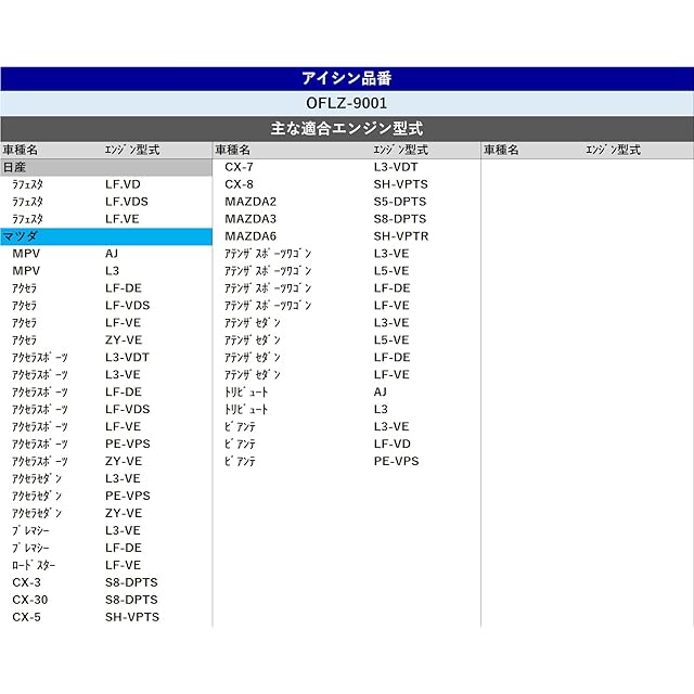 商品タイプ:OFLZ-9001 (マツダ、日産)