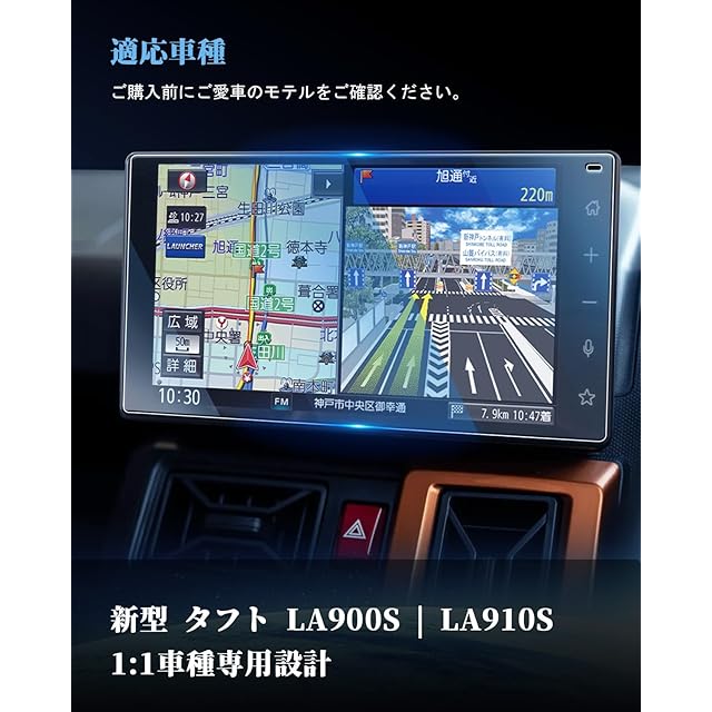 【超卓なHD映像&抜群の保護力】タフト ナビ フィルム は、96%の高透過率を誇り、HDクリアな鮮明さと輝きをキープし、さらに反射や映り込みを軽減します。驚くほど美しい視覚効果と鮮やかなオリジナルカラーをお楽しみいただけます。9H高硬度でキズや割れから守れ、長持ちする耐久性のある保護フィルムです。