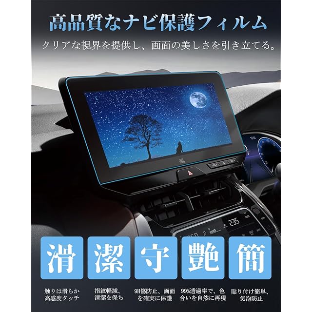 【超卓なHD映像&抜群の保護力】80ハリアー ナビ 保護フィルムは、96%の高透過率を誇り、HDクリアな鮮明さと輝きをキープし、さらに反射や映り込みを軽減します。驚くほど美しい視覚効果と鮮やかなオリジナルカラーをお楽しみいただけます。9H高硬度でキズや割れから守れ、長持ちする耐久性のあるハリアー80系専用アクセサリーです。