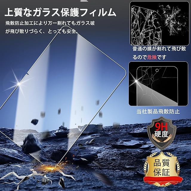 【耐久性 安全性】: 強化ガラス 耐衝撃、スクラッチ防止。飛散防止加工、激しい衝撃を受けてもガラスフィルムは貼り付けのままでございます。飛散傷害に安心してください。耐衝撃, 傷に強い素材採用、衝撃からきちんと守ります。
