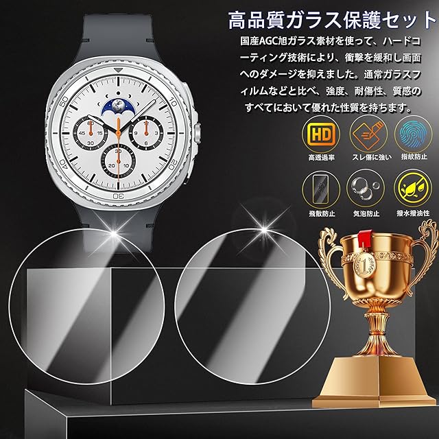 商品名:HKKAIS Galaxy Watch8 Classic (46mm) フィルム【2枚セット】日本製硝子採用 Galaxy Watch8 Classic (46mm) 用 ガラスフィルム 強化 ガラス 液晶 保護 フィルム