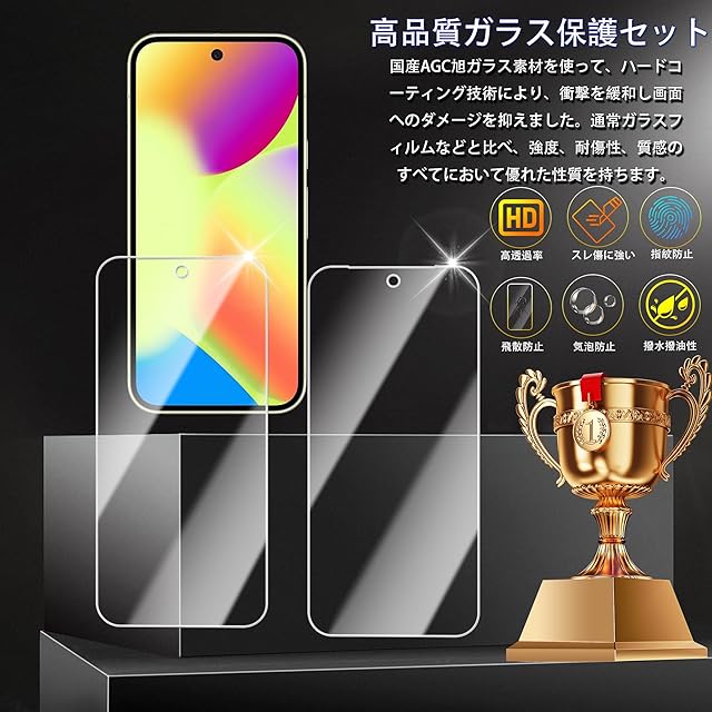 商品名:HKKAIS Google Pixel 10 Pro/Google Pixel 10 用 日本旭硝子製素材 高い透過率 硬度9H 貼り付け簡単 強化ガラス フィルム ガイド枠付き【2 枚セット】