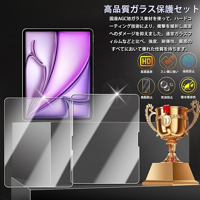 商品名:HKKAIS アンチグレア iPad Pro 13 2024 / iPad Air 13 2024 用 さらさら ガラスフィルム 日本旭硝子製素材 強化ガラス 反射防止 指紋防止 サラサラ 保護フィルム【2枚セット 】