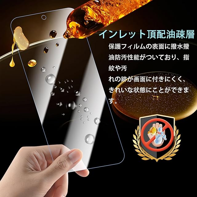 【貼り付けが簡単】 強化ガラスフィルムの背面にはナノ分子材料があり、貼り付ける際にはガラスフィルム上部を画面の各ポートに位置合わせ、エッジを持ってゆっくりと下ろすと、画面に自動的に吸着して気泡を排出します。すごく簡単な作業です。【注意】この機器は周辺部が曲面となったラウンド仕様のため、保護フィルムを端まで貼ることができません。そのため、表示部分よりも保護フィルムが小さくなっています。購入する場合、ご承知ください。"