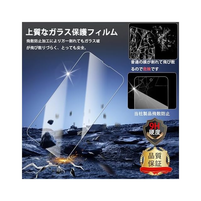 【耐久性 安全性】: 強化ガラス 耐衝撃、スクラッチ防止。飛散防止加工、激しい衝撃を受けてもガラスフィルムは貼り付けのままでございます。飛散傷害に安心してください。耐衝撃, 傷に強い素材採用、衝撃からきちんと守ります。