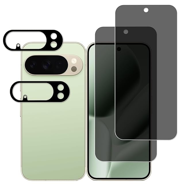HKKAIS 左右の視野 のぞき見防止 Google Pixel 10 Pro 用 覗き見防止 ガラスフィルム 日本製硝子採用 強化 ガラスカメラフィルム 液晶画面 保護フィルム【2+2枚入り】