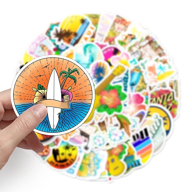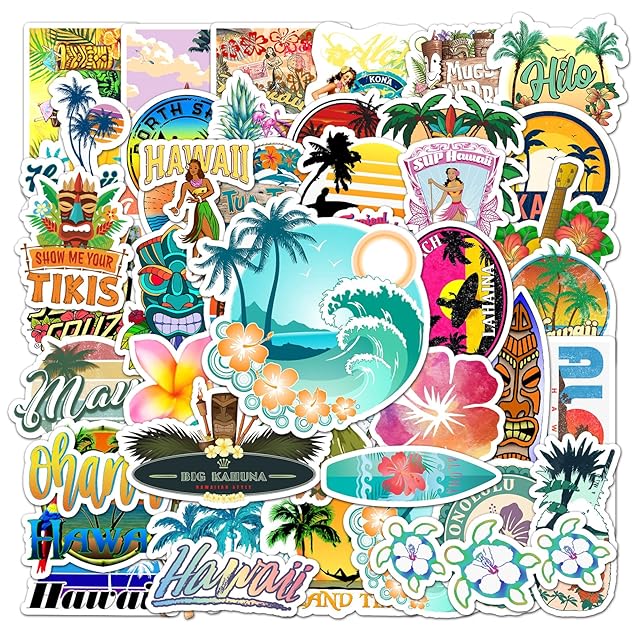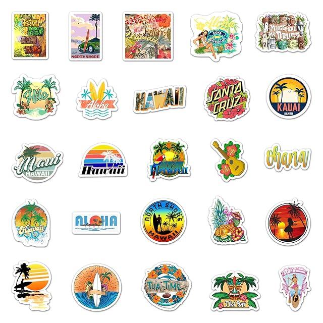 ハワイステッカーセット 50枚 アロハ防水ステッカー ハワイトラベルシールパック ブランドステッカースーツケース 車 バイク ヘルメット スケボー ギターなどに適用
