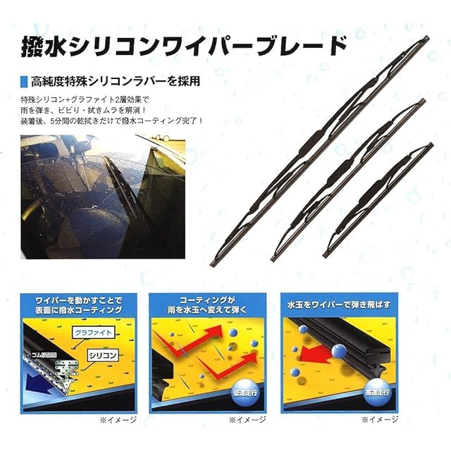 優れた撥水効果を発揮!グラファイトコーティング+高純度特殊シリコンラバー採用のワイパーブレード!
