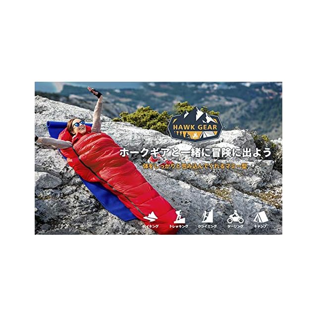 HAWK GEAR(ホークギア)のマミー型寝袋(シュラフ)です。-15度耐寒。
