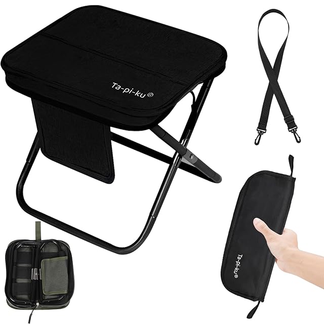 折りたたみ椅子 万博チェア 紅葉狩り アウトドアチェア ショルダー&2ポケット&クッション付き お出かけ便利 カーボンスチール 耐荷重アップより強く 静態耐荷重120kg 動態耐荷重100kg 折り畳み コンパクトイス【2025Newモデル】 0.5kg 展開サイズ30×25×高さ26cm 収納サイズ30×12×厚み5cm 旅&ピクニックTapiku (ブラック1個)