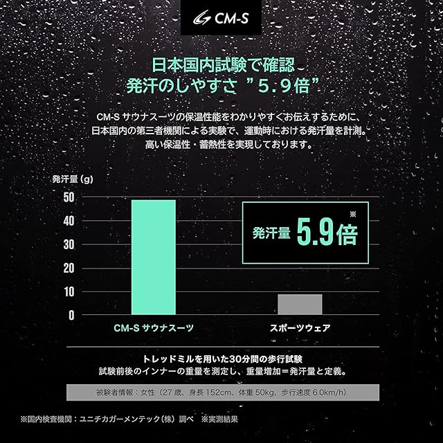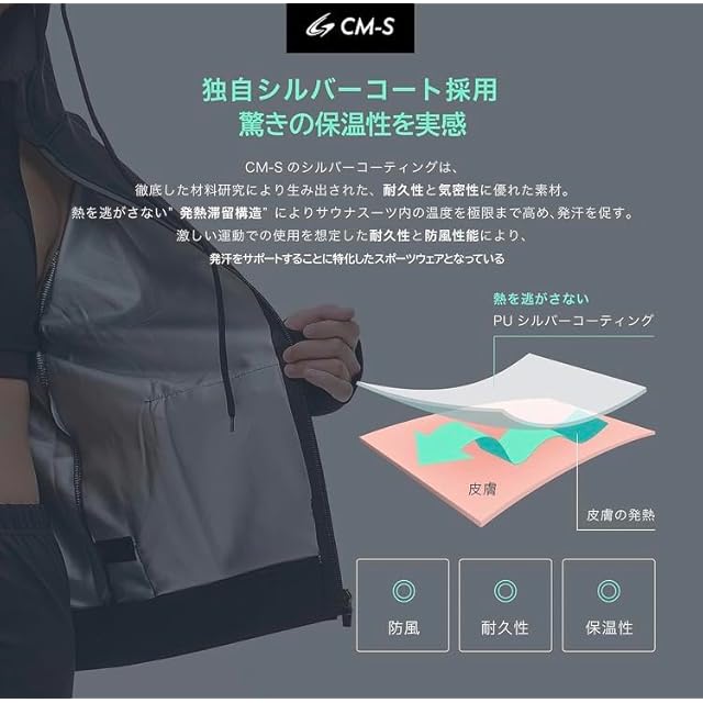 【発汗量5.9倍!着るだけで滝のような汗】独自のPUシルバーコーティングで熱を逃がさない。防風、防水、耐摩耗に優れた素材を採用。ウエストにゴムを採用し、高い保温性を実現。※国内検査機関で測定した実測値