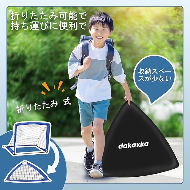 【正規品】dakaxka サッカーゴール 折りたたみ ゴール 子供用 サッカー ゴール 室内 屋外兼用 フットサル用ゴール ポータブルサッカーゴール 専用収納袋プレゼント設置用動画と日本語の取扱説明書が付属します (ブルー1個, 90*74*74)