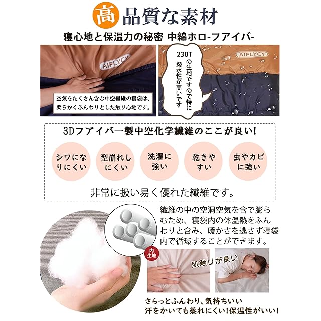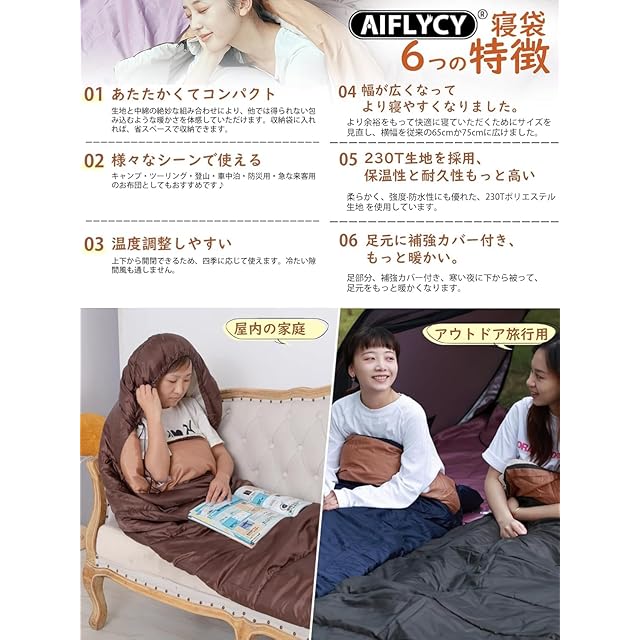 AIFLYCY 寝袋 シュラフ 封筒型 軽量 冬用 夏用【足元に二重保温・230T防水】オールシーズン 1.8Kg 1.0Kg 2.2Kg 1.4Kg コンパクト 快適温度-15℃-25℃ 簡単収納 軽量 中綿 登山 車中泊 防災用 アウトドア キャンプ 丸洗い可能 春夏秋冬の使用可能 収納袋付き