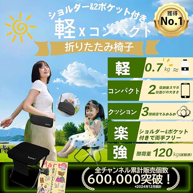 【どこへでも楽に持ち歩きが可能です】花見・GW・キャンプ・BBQ・釣り・花火大会・ピクニック・子供の試合観戦などアウトドア活動だけでなく、待ち時間、長時間の乗車、通勤等日常生活にも不可欠な便利なアイテムです