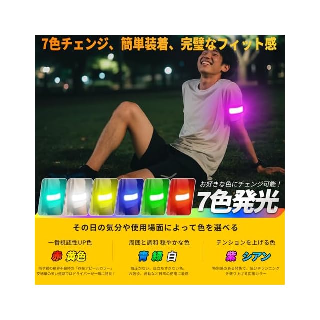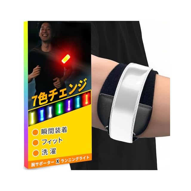ランニング ライト 腕サポーター【7カラーチェンジ 完璧なフィット感 簡単装着】 Type-C充電式 LEDアームバンド 推し活 ライブ グッズ 防水 夜間 散歩 ジョギング ウォーキング ライト 反射バンド 反射板 光る腕輪 夜間の事故防止