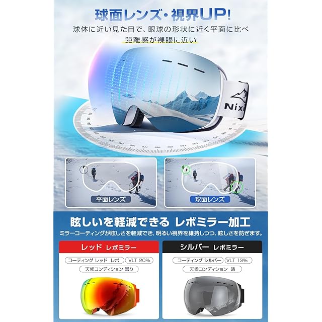 【180°広視野&UVカット】 3D成形の広角球面レンズを採用し、180°以上のパノラマ視界を実現。視野の歪みを最小限に抑え、自然で鮮明な景色を再現します。アジアンフィット設計 紫外線遮蔽で日本人の顔にしっかりフィットし、長時間の使用でも快適。UV400カットレンズにより、有害な紫外線や雪面反射のまぶしさを効果的に遮断し、目をしっかり守りながらクリアな視界を提供します。