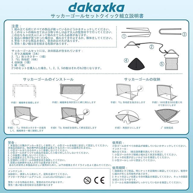 【正規品】dakaxka サッカーゴール 折りたたみ ゴール 子供用 サッカー ゴール 室内 屋外兼用 フットサル用ゴール ポータブルサッカーゴール 専用収納袋プレゼント設置用動画と日本語の取扱説明書が付属します (ブラック2個, 124*94*94)
