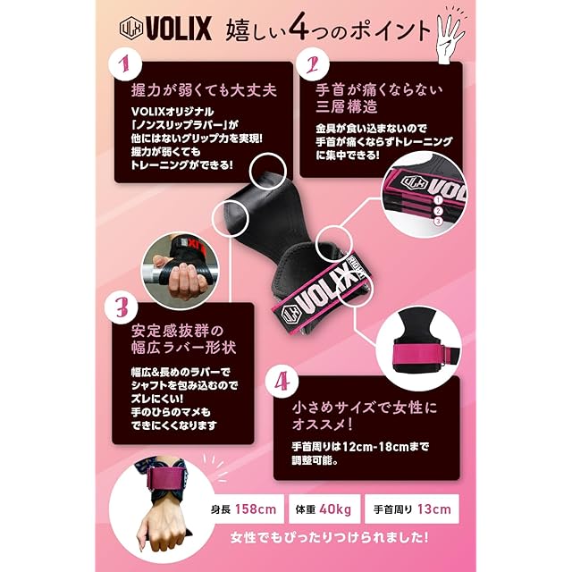 パワーグリップ【小さめサイズで女性にも】【持田教利選手推奨】手首が痛くならない 懸垂 デッドリフト 筋トレ トレーニング (ピンク 小さめ)