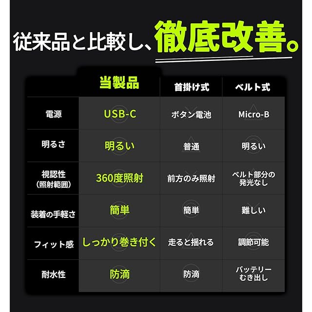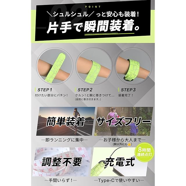 ランニングライトVer.2.0【瞬間装着x圧倒的視認性】 ランニング ライト 高輝度 LED Type-C 充電式 反射バンド ウォーキング 散歩 夜 事故防止 安全対策 視認性アップ (ネオングリーン)