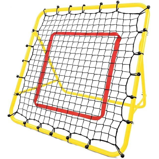 【日本企業】【完全折りたたみ可能】リバウンドネット サッカー 野球 100cm*103cm室内 屋外兼用 野球トレーニング クレイジーキャッチ サッカー トレーニング グッズ リバウンダー ピッチングネット フットサル 練習 グッズ 道具 (イエロー)